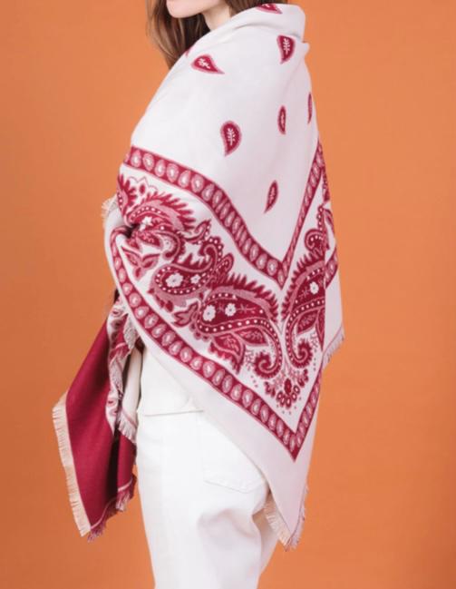 Grand foulard carré (130/130 cm) imprimé Paisley, tout doux et chaud pour la rentrée…