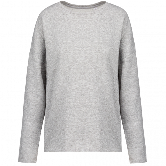 Molleton non gratté “French Terry”. Toucher ultra doux. Coupe loose décontractée avec large encolure. Bords francs au bas du vêtement.